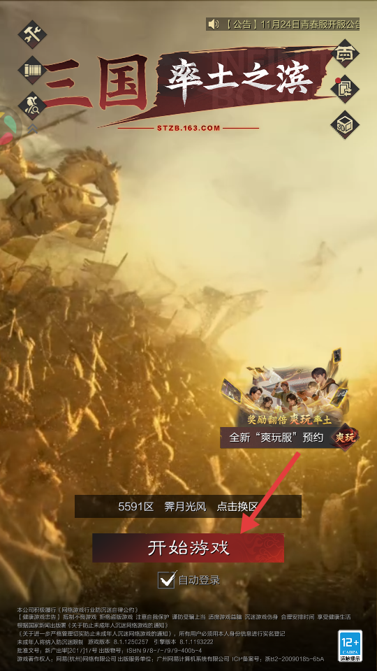 3、选择服务器后点击开始游戏。