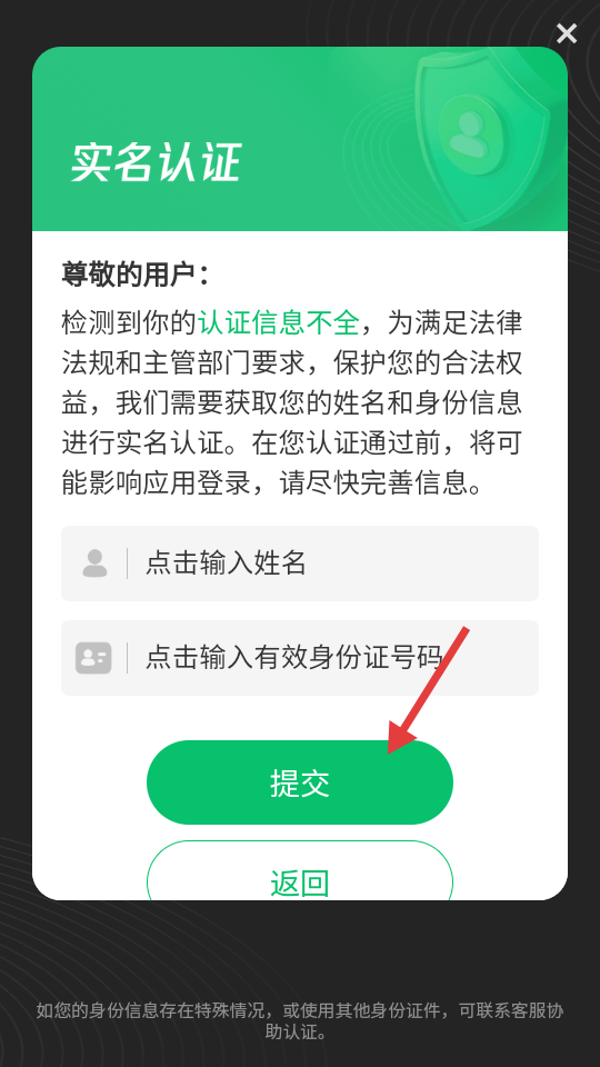 2、提交实名认证信息。