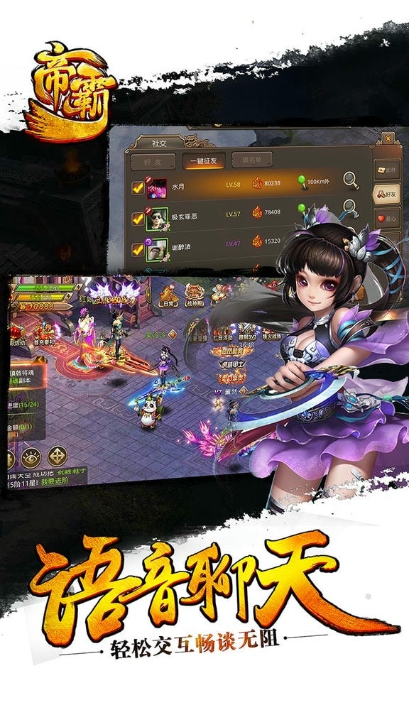 帝霸手游是一款特色好玩的动作手游,经典的战斗场面,独具匠心的游戏内容,体验一个真实,刺激的即时手游的乐趣!打造全新的动作连招快感乐趣。游戏内容还有许多,如果你也想玩的话,赶紧来 !