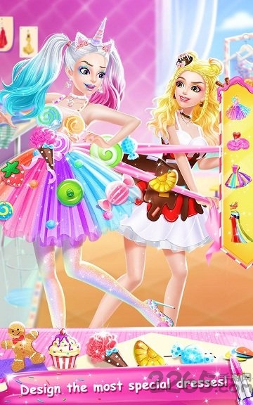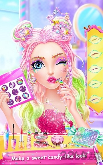 用你神奇的糖果工具使你遍布全世界的漂亮顾客变得更加美丽!用美味的面部护理材料和甜蜜的发型打扮她们!为她们的指甲涂上草莓红,贴上美味的小熊软糖贴纸!使用专业的美妆工具,打造最甜蜜的容貌!