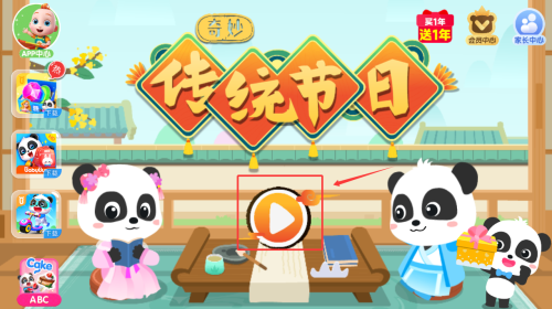 1、点击红框标注的橙色播放按钮,启动奇妙传统节日启蒙应用。
