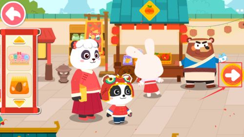 3、在市集场景中点击右下角操作键,与熊猫角色互动学习文化。