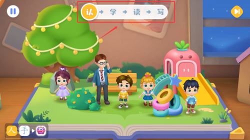 3、点击红框标注的认字标签,开始汉字学习环节。