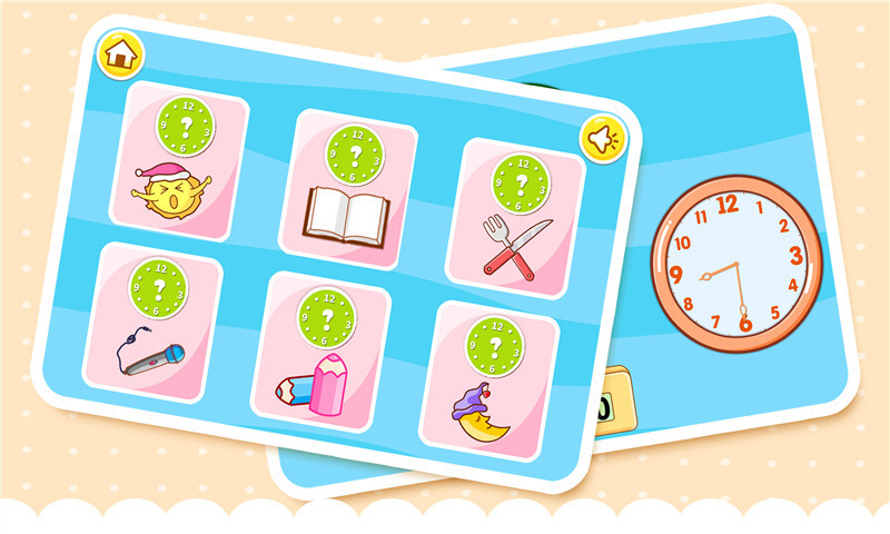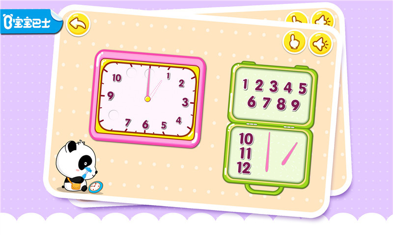 宝宝认时钟游戏是一款专为宝宝们量身打造的早教小游戏,帮助宝宝更好的认识身边的时钟,开拓宝宝大脑智力,让宝宝在游戏中快乐学习,健康成长,快来 点击下载体验一下吧!