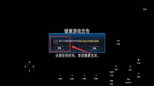 1、阅读健康游戏忠告后,点击红框标注的同意按钮继续。