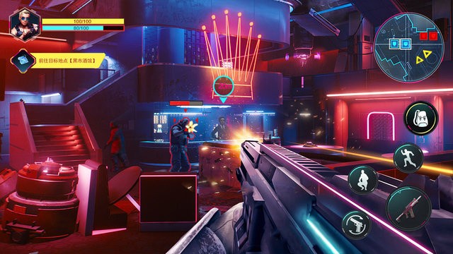 3.光彩动人的赛博朋克风画面呈现,置身于人类未来的大都市之中开启动作冒险之旅.