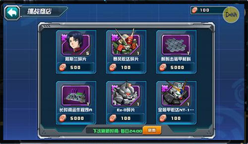 15.商店:激活币商店、黑市商店新增可刷新出部分限定机体碎片(异端敢达红色机改、脉冲敢达、全装甲敢达(雷霆宙域版)、新安州);