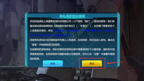 1、阅读隐私政策后,点击红框标注的黄色接受按钮继续。