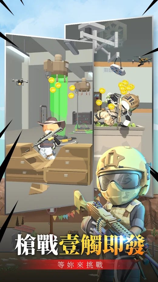 超休闲的玩法搭配射击,满足策略搭配的同时还可以发挥你炫酷的枪法,枪火纪元全新动作射击游戏,操控特工,执行任务,在神枪行动的世界中,有着丰富的场景、爽快的战斗、炫酷的武器和个性化的外观,谁会成为最强特工呢?