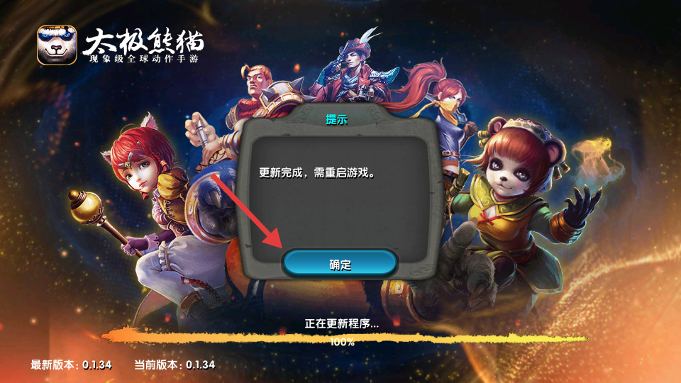 3、等待更新完成后点击确定并重启游戏。