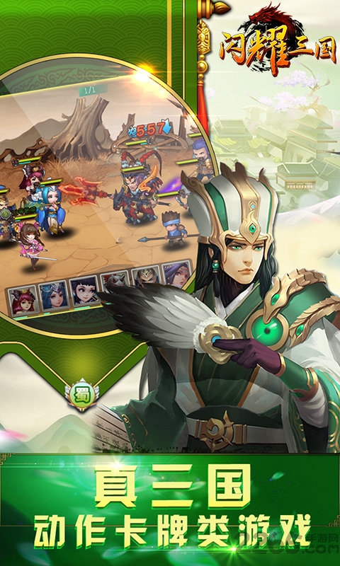 闪耀三国安卓版是一款以三国题材为游戏主线剧情的策略卡牌类手游,游戏在角色设定和剧情上精准还原了原著情节。带你走进游戏本身,感受不一样的三国,霸主之争等你挑战,快来获取游戏下载链接体验吧!