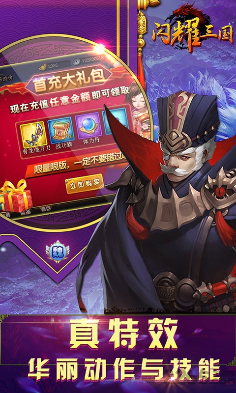 最强神将登录即送,3日登陆就可以获得三国名将赵子龙,7日登陆,赵云免费5星,8日登录武将张飞免费领取;首冲6元邂逅四大美女之一“貂蝉”,另外还有海量元宝等你来领取……最良心的手游,没有之一!