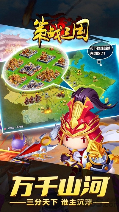 萌系的三国策略之战,经典的英雄人物重现江湖,传奇的三国之战再度重演!游戏加入大量卡牌游戏的推图和卡牌收集的游戏元素,两种玩法相结合带来全新的游戏体验!谋略三国,不!是萌略三国,来体验一波萌系的策略三国吧!