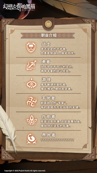 六大职业划分:战士、勇者、游侠、干扰者、疗愈者、界外者。