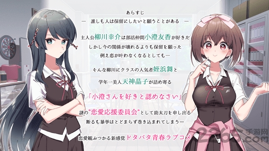 这时,他遇到了「恋爱应援委员会」的两位少女,她们分别是班级焦点人物姪浜舞和年级第一美少女天神晶子.