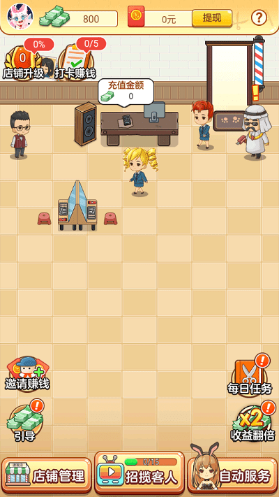 2、帮助自己赚钱扩大自己的理发店规模,建立自己的沙龙王国才能变更好。