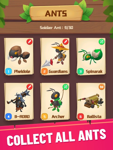 - 自由召唤蚂蚁.训练它们,升级它们,让它们成为最好的!
