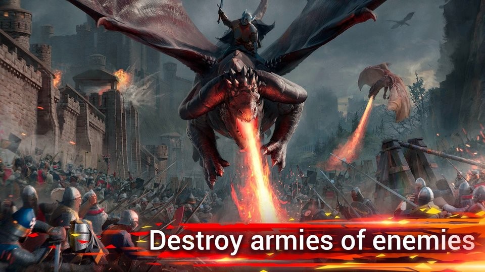 龙是最强大的生物,但不要忘了你的军队.用一切你必须消灭的敌人.杀死所有人或烧毁城堡和塔楼以取得胜利!