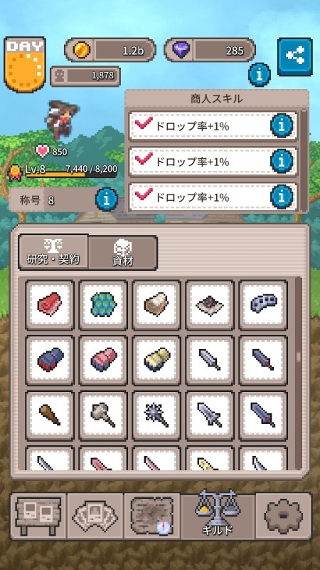 探索各个区域,讨罚敌人获取资源和金币吧。金币可以用於投资产业设施,发展岛内经济吧。此外,也可以利用资源制作物品,打造护卫角色的装备。