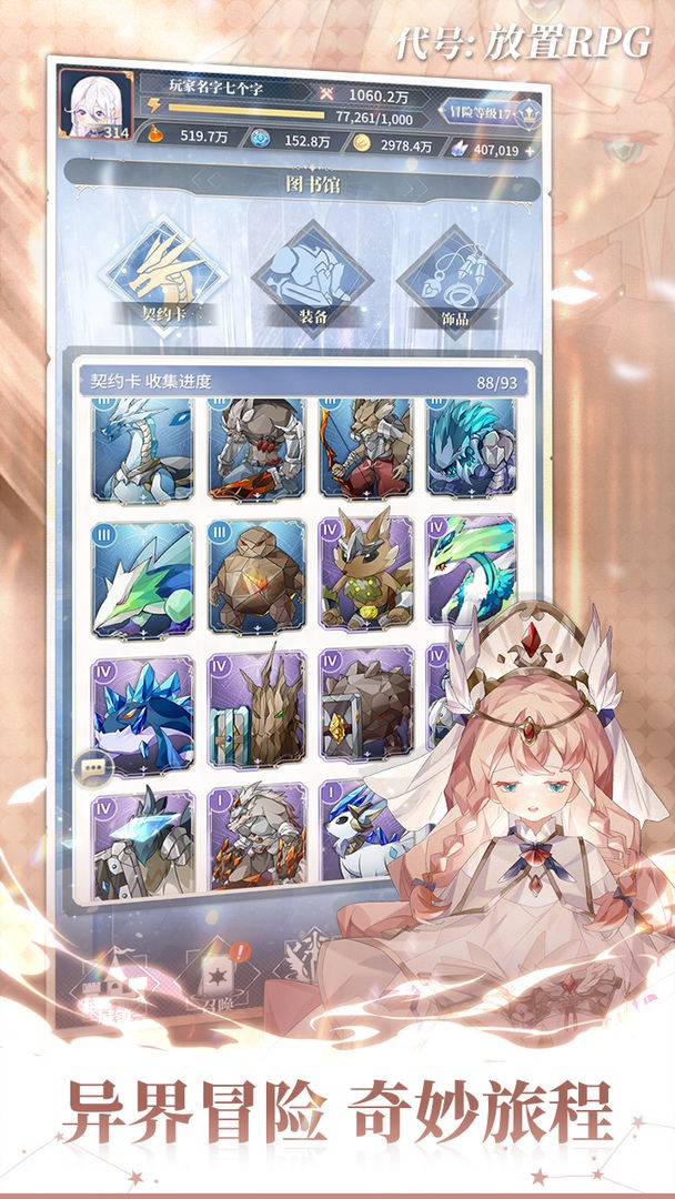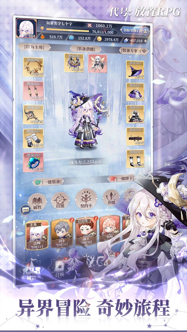 代号放置rpg手游是一款二次元画面打造的放置冒险游戏,游戏中玩家将集结各种各样的伙伴,在广阔的异世界中自由的冒险.休闲的放置战斗玩法,丰富趣味的rpg养成系统,还有各种精彩的故事剧情.喜欢的朋友欢迎来下载.