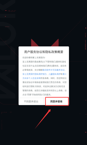 1、阅读用户协议后,点击红框标注的同意并使用按钮。
