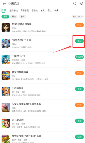 3、在游戏详情页点击红框标注的试玩按钮,立即体验游戏。