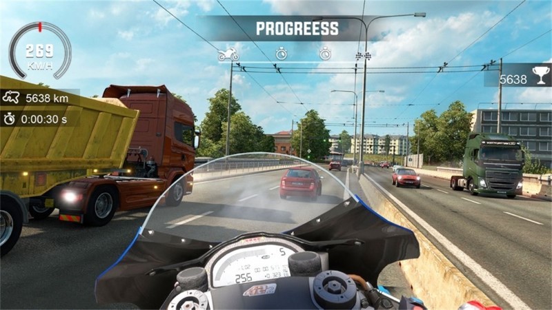 在车流中高速前进诸多竞速任务,自由尝试,很精彩。