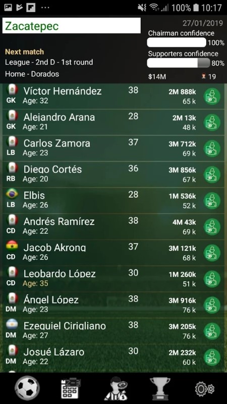 简单的足球(足球)管理游戏。尝试成为国家联赛和国际比赛的教练。游戏有一个开放的数据库,因此您可以添加,编辑,删除新的团队和队员。