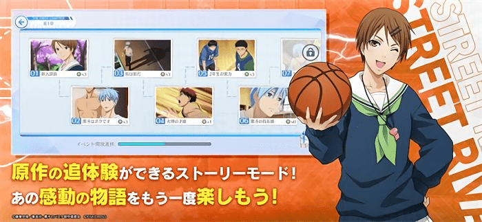 游戏内已经开始配信“黑子哲也、诚凛高校篇”和“黄濑凉太、海常高校篇”,以后还会陆续配信“绿间真太郎、秀德高校篇”等合宿剧情、每个月的活动剧情等丰富内容。随着剧情的进展,能够入手到角色们的CG、邮件和换装道具。