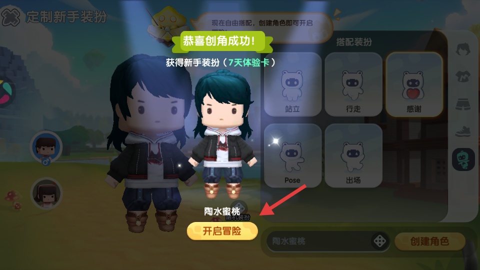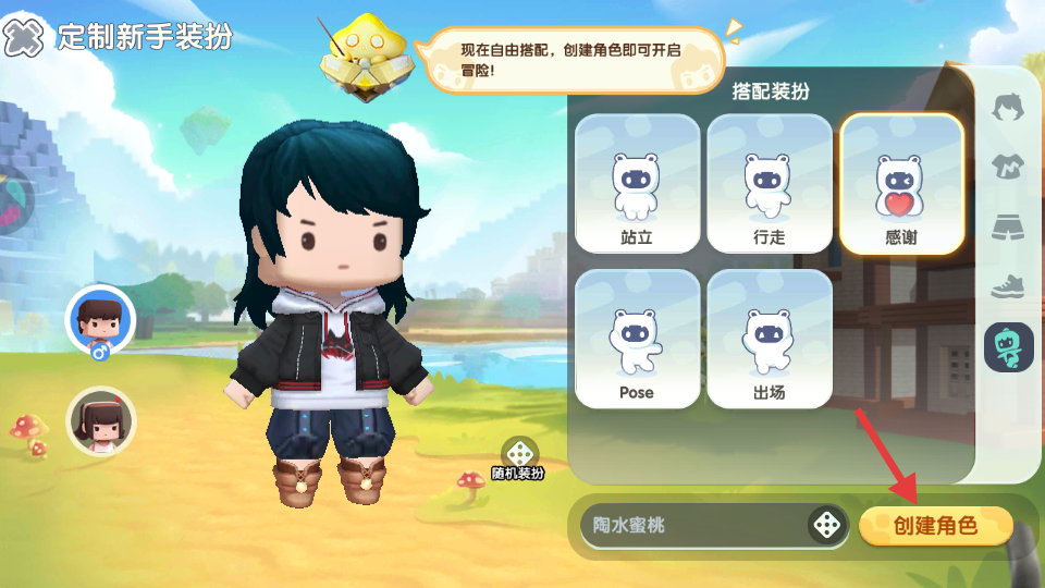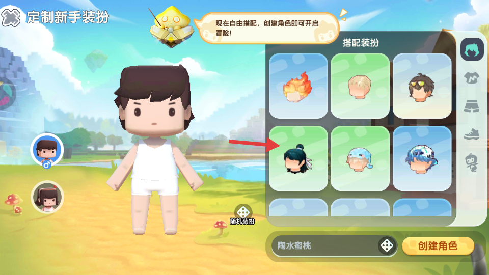1、登录游戏后可定制新手装扮,点击道具自由搭配。