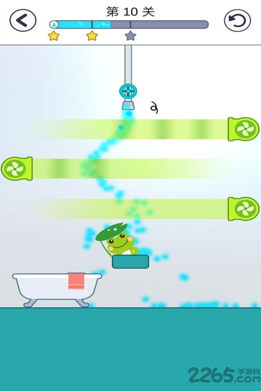 控制水流的速度,稳住青蛙的位置,让他能够安全通过水流,顺利过关;