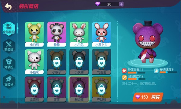 2、加入到这场萌化的竞技战场,这些角色都有着自己的天赋来战斗。