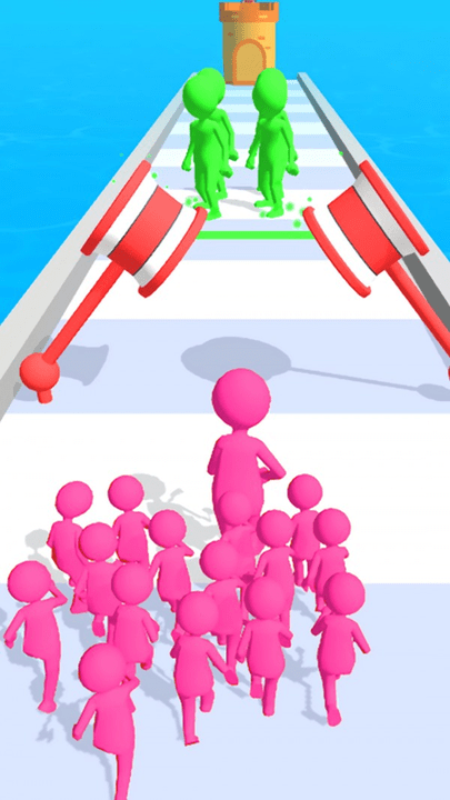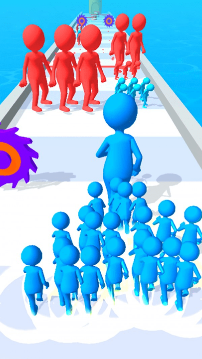 3、汇集更多与你相同颜色的人群一起进行挑战,你还需要灵活的躲避各个障碍。