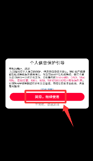 1、点击个人信息保护引导里的同意并继续。