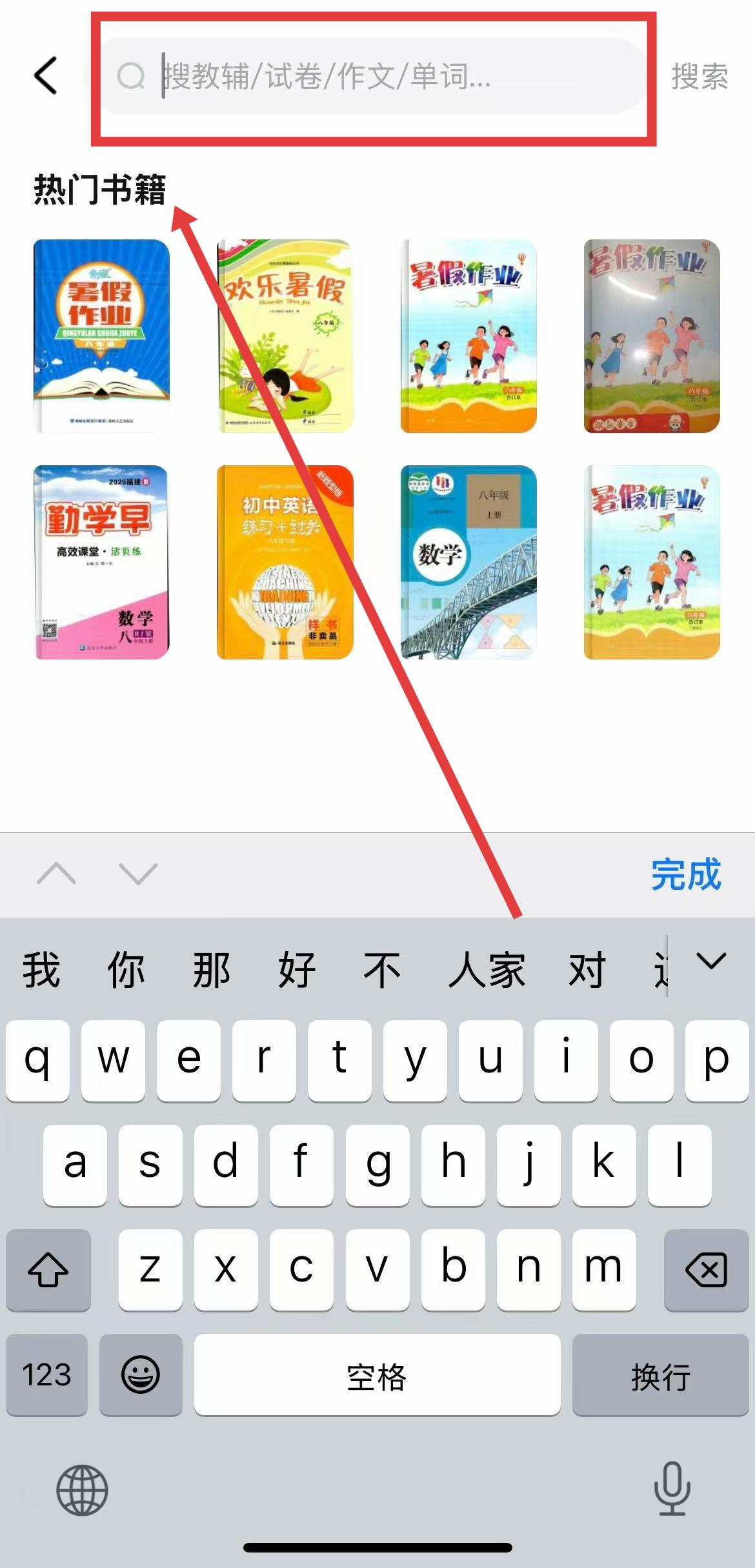 3、可以在搜索栏输入教辅的具体名称,或者是在热门书籍找到并查看整本书。