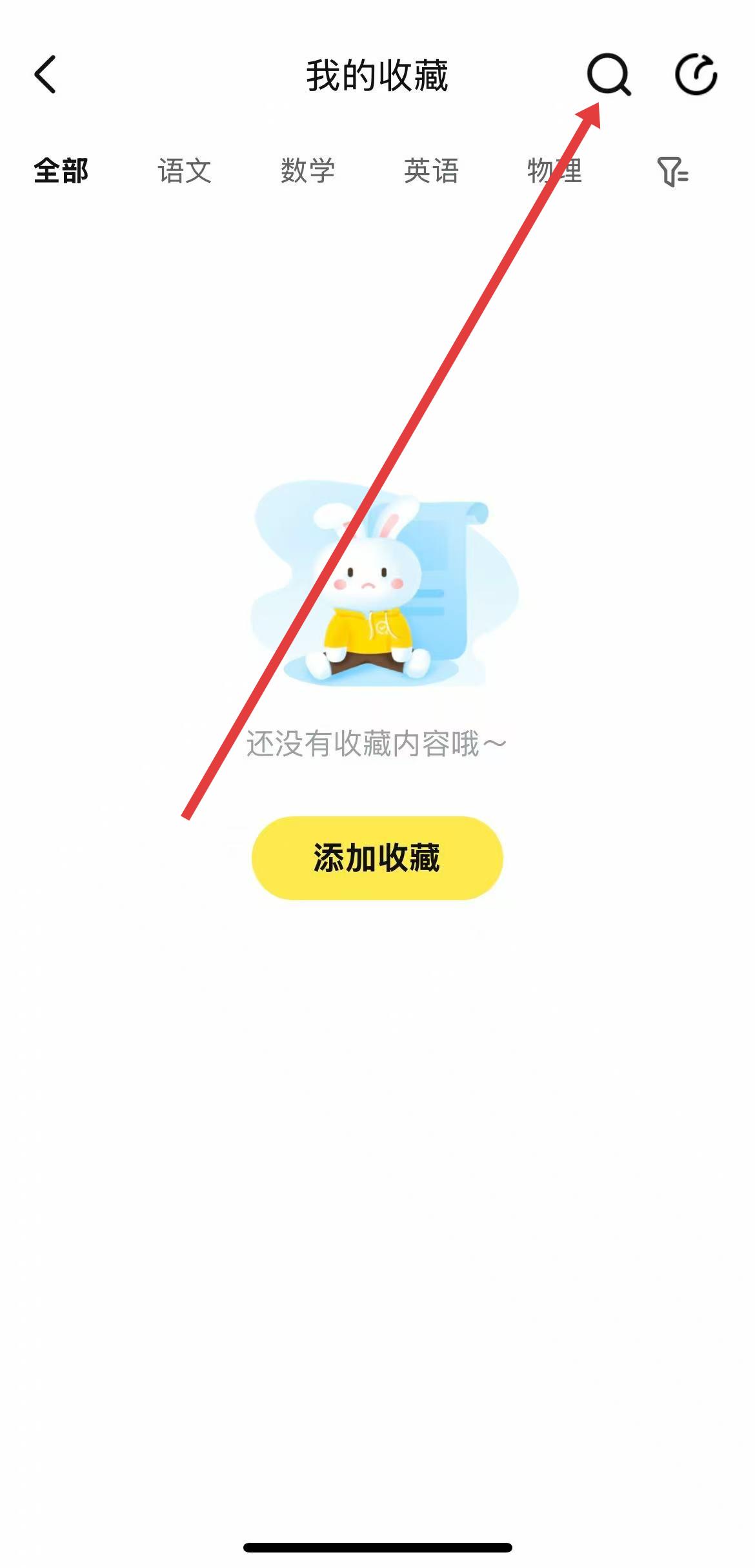 2、进入我的教辅收藏界面之后,点击顶部右侧的搜索图标,进入搜索教辅。