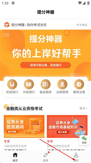1、在提分神器首页,点击底部我的,进入个人页面。