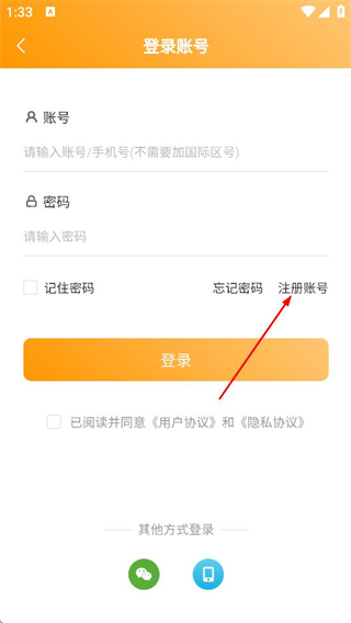 3、在登录账号页面,点击注册账号的选项,进入注册账号页面。