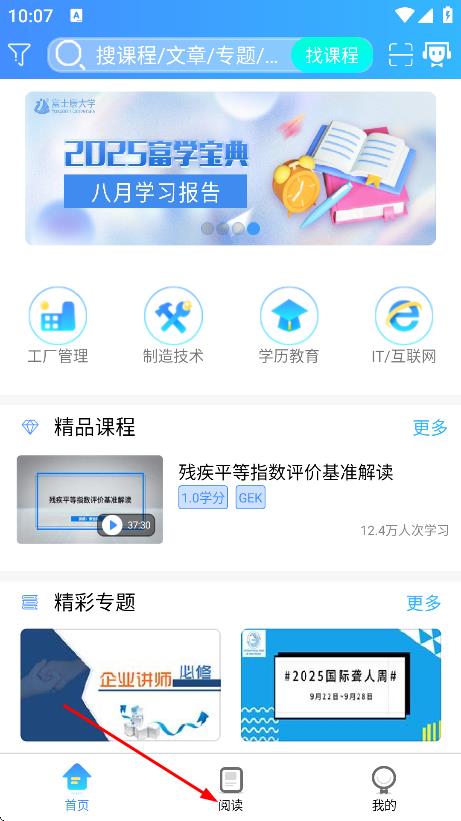 1、首先我们点击页面底部阅读,进入阅读页面。