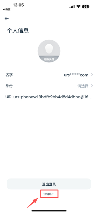 3、在个人信息页面,点击注销账户选项,进入注销风险提示页面。