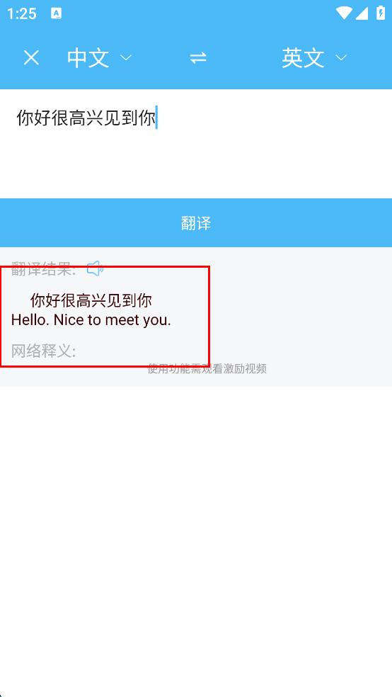 4、输入文字后,点击“翻译”按钮,APP会快速给出翻译结果,可查看翻译后的内容,满足中英互译需求。