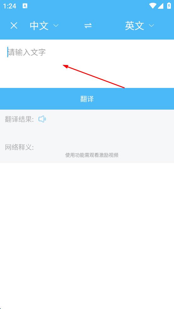 3、点击搜索栏后,进入翻译输入界面,界面可选择翻译语言方向,在输入框中输入需要翻译的文字内容。