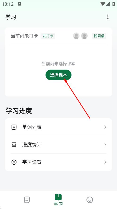1、在学习页面,点击选择课本,进入课本选择相关流程。