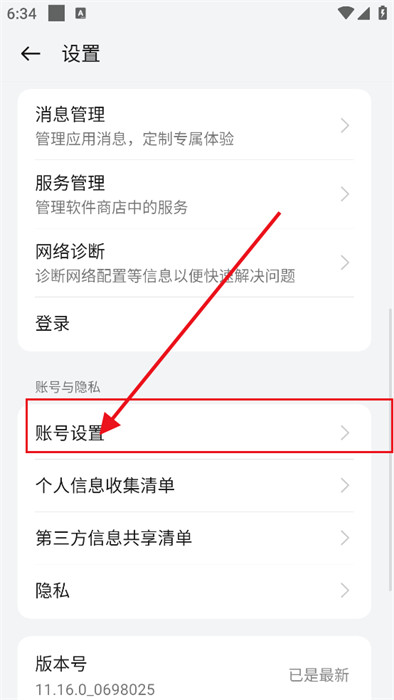 4、接着,向下滑动,找到【账号管理】,并点击进入平台;