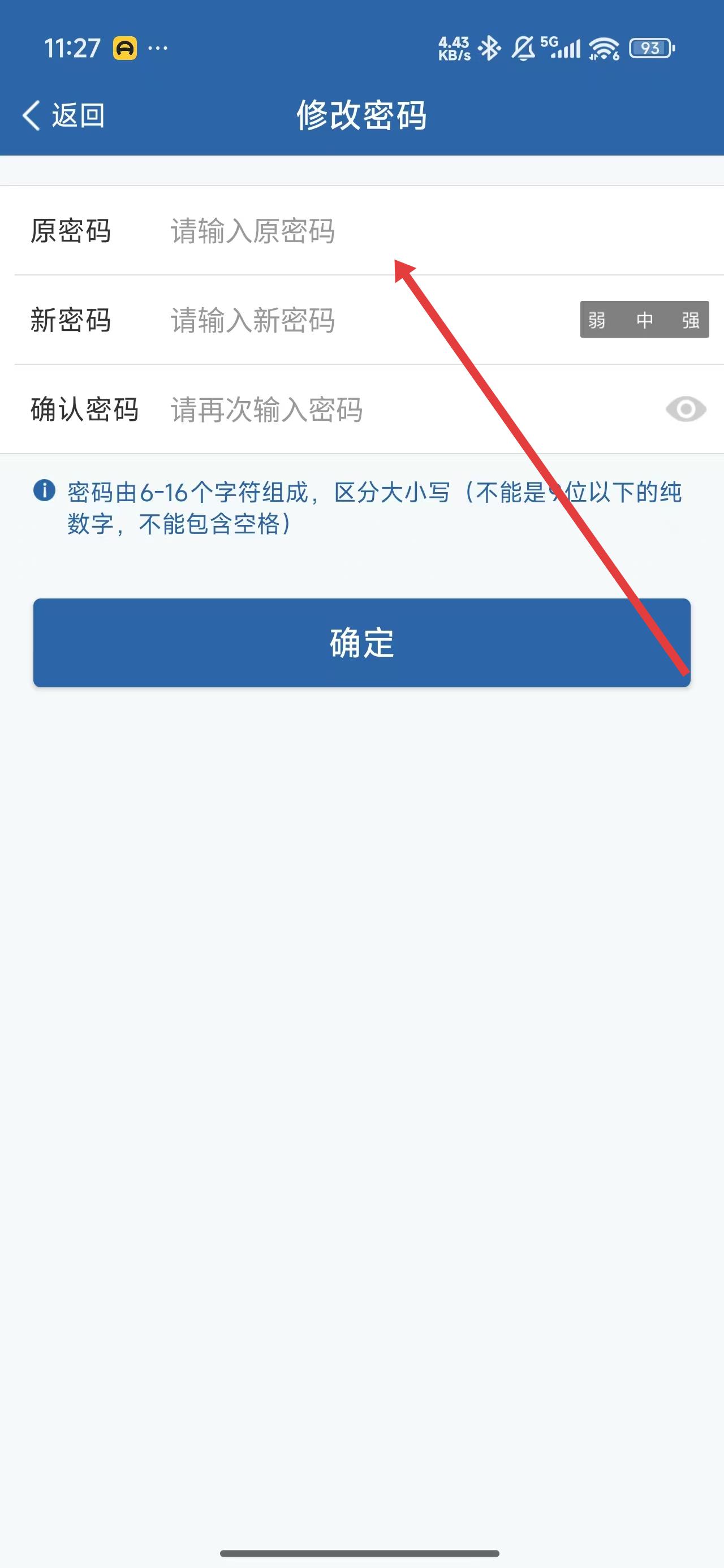 4、在进入到修改密码页面后,依次输入原密码新密码,完成修改操作。
