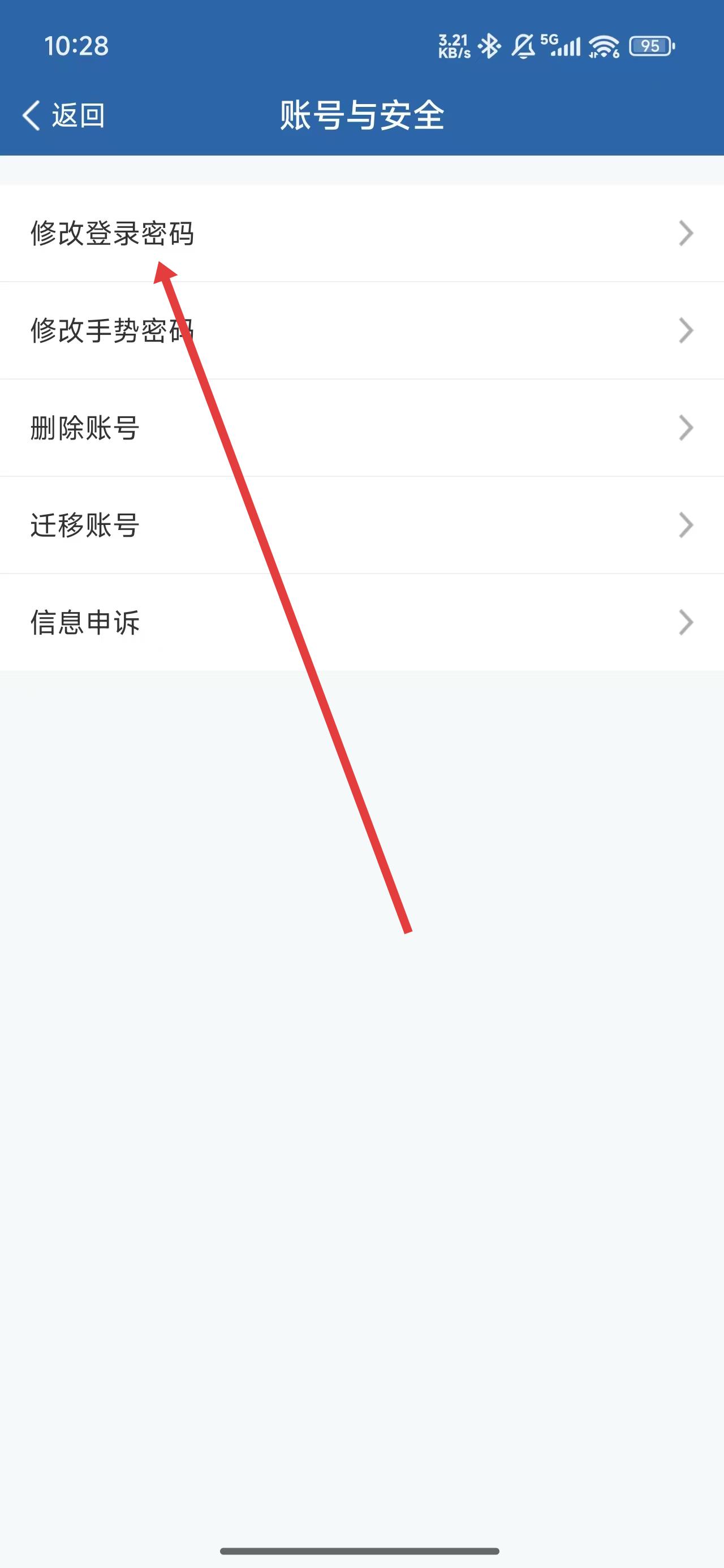 3、在账号与安全下,找到修改登录密码选项,点击进行修改操作。