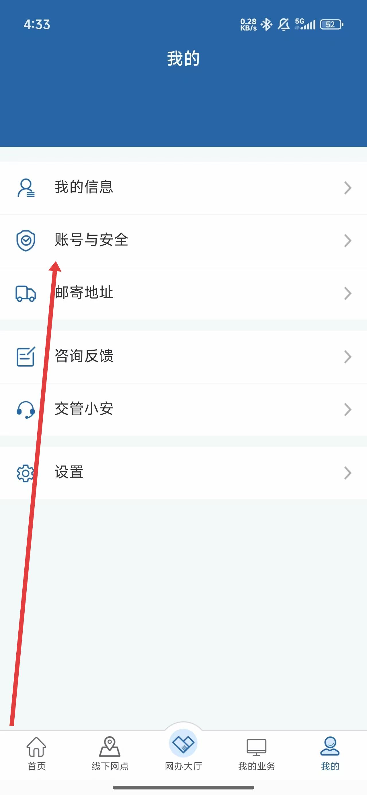 2、在我的页面中,点击账号与安全进入查看更多功能。