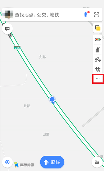 2、进入高德地图首页后,在右边找到【...】选项并点击,点击后在出现的界面中找到【顺风车】选项并点击。