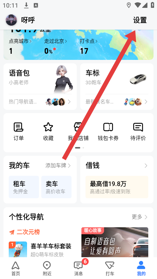 1、打开高德地图APP,点击底部我的进入个人页面,找到右上角设置图标并点击,进入设置界面,开启账号注销的操作路径。