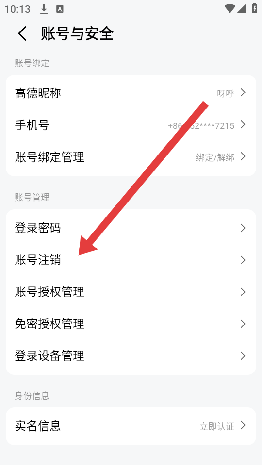 3、在账号与安全页面内,选择账号注销选项,按照系统提示完成身份验证如密码、验证码等,即可提交账号注销申请。